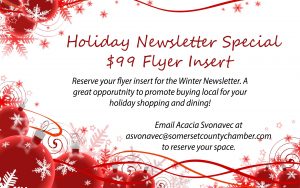 Welcome to the Somerset County Chamber of Commerce members' section. This is your section for collaboration and coordination. Keep abreast of important Chamber updates, upcoming events, and member announcements. View the newsletter and receive the latest details on Chamber benefits such as our energy program, group health insurance, and advertising opportunities.